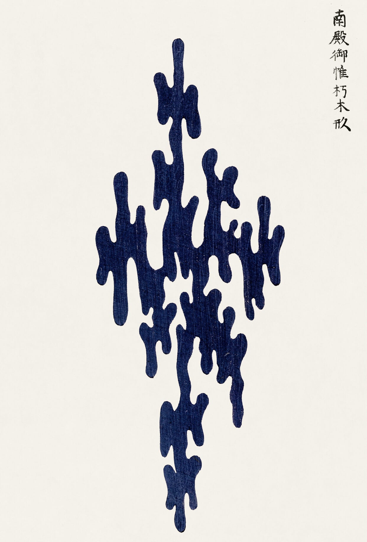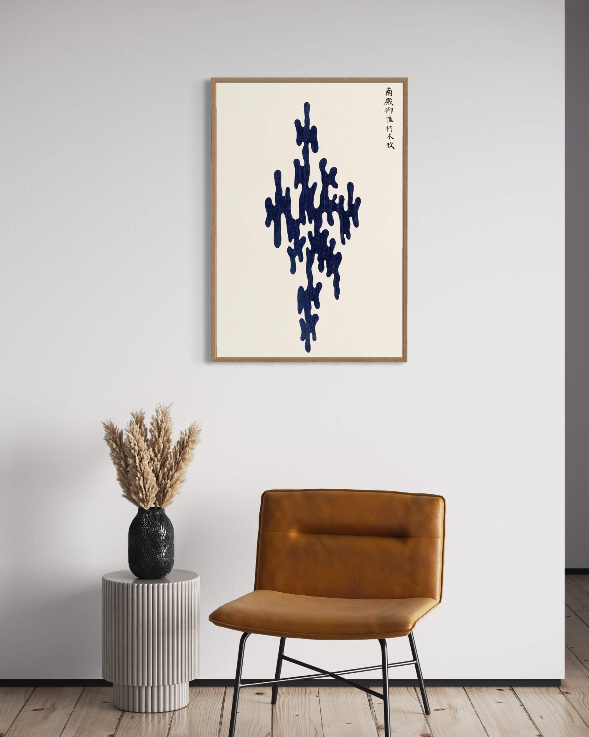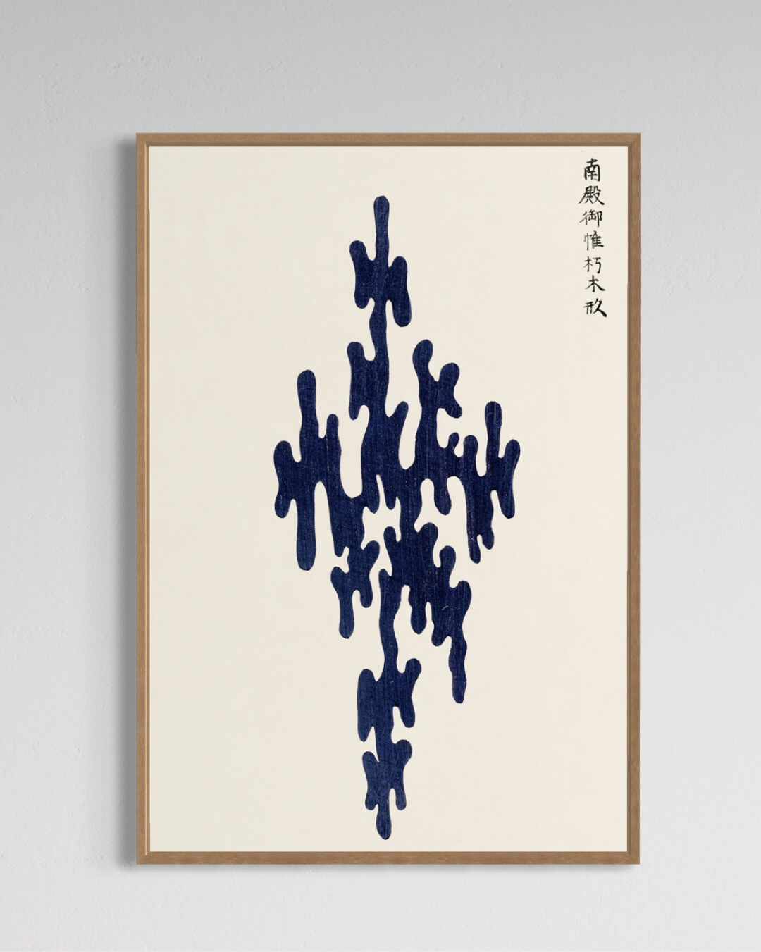 Japansk plakat med originalt antikt motiv med mørkeblåt mønster.