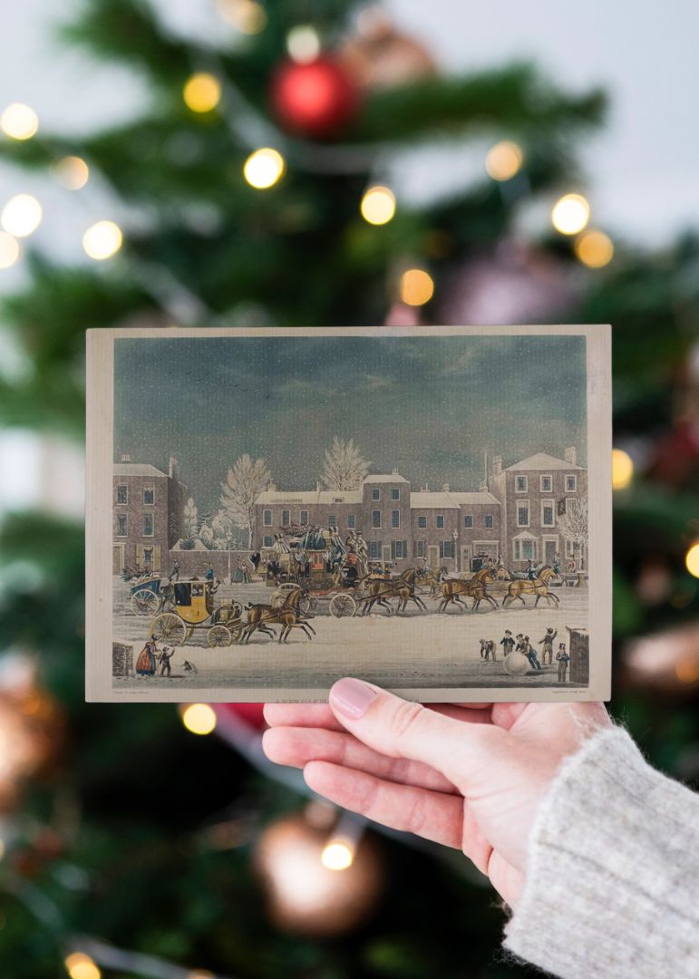 Få følelsen af juleeventyr ind i stuen – denne plakat inviterer dig til at drømme om gamle dages julefejring.