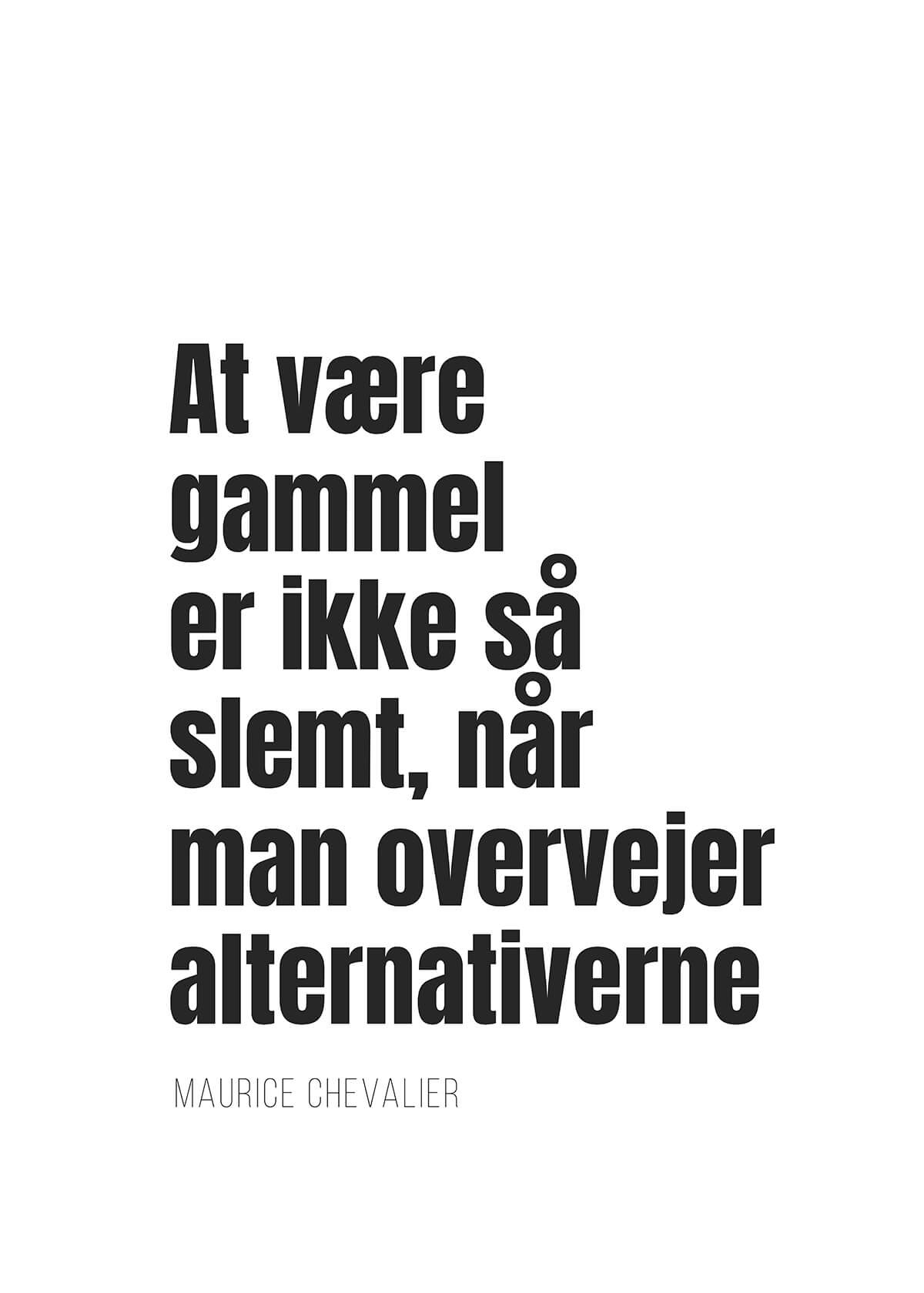 En finurlig påmindelse om, at alder er relativ, og at alternativet måske ikke er bedre! Denne plakat i dybe, sort-hvide toner giver et stilrent og tankevækkende udtryk – perfekt til dig med lidt humor på væggene.