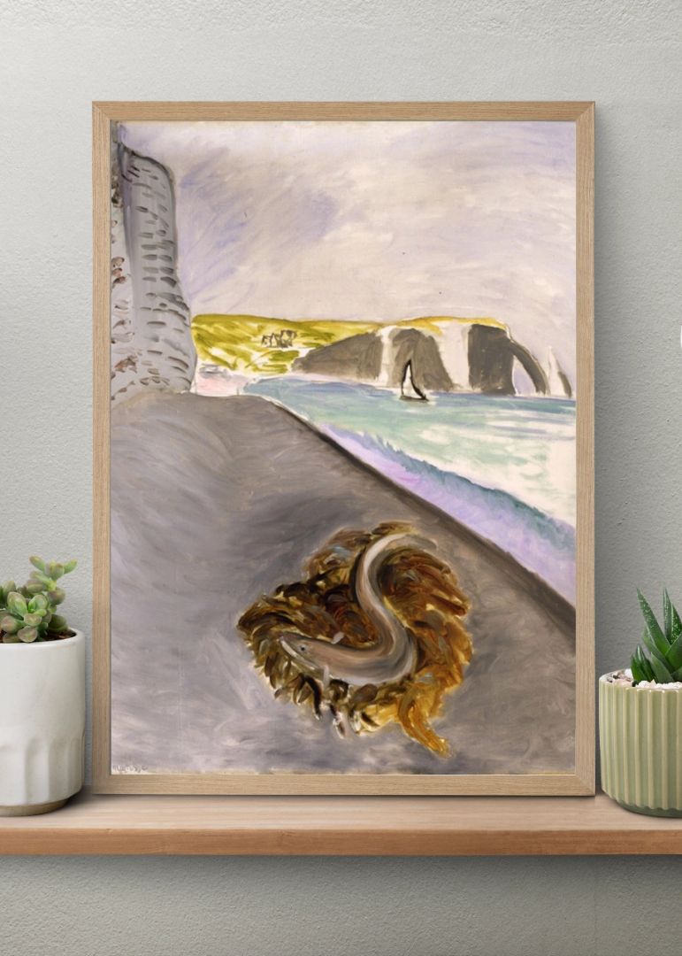 Med en ål i forgrunden og Étretats klipper i baggrunden kombinerer dette værk det jordnære med det sublime. Den lyse farvepalette skaber en følelse af lethed og åbner for fantasiens verden.