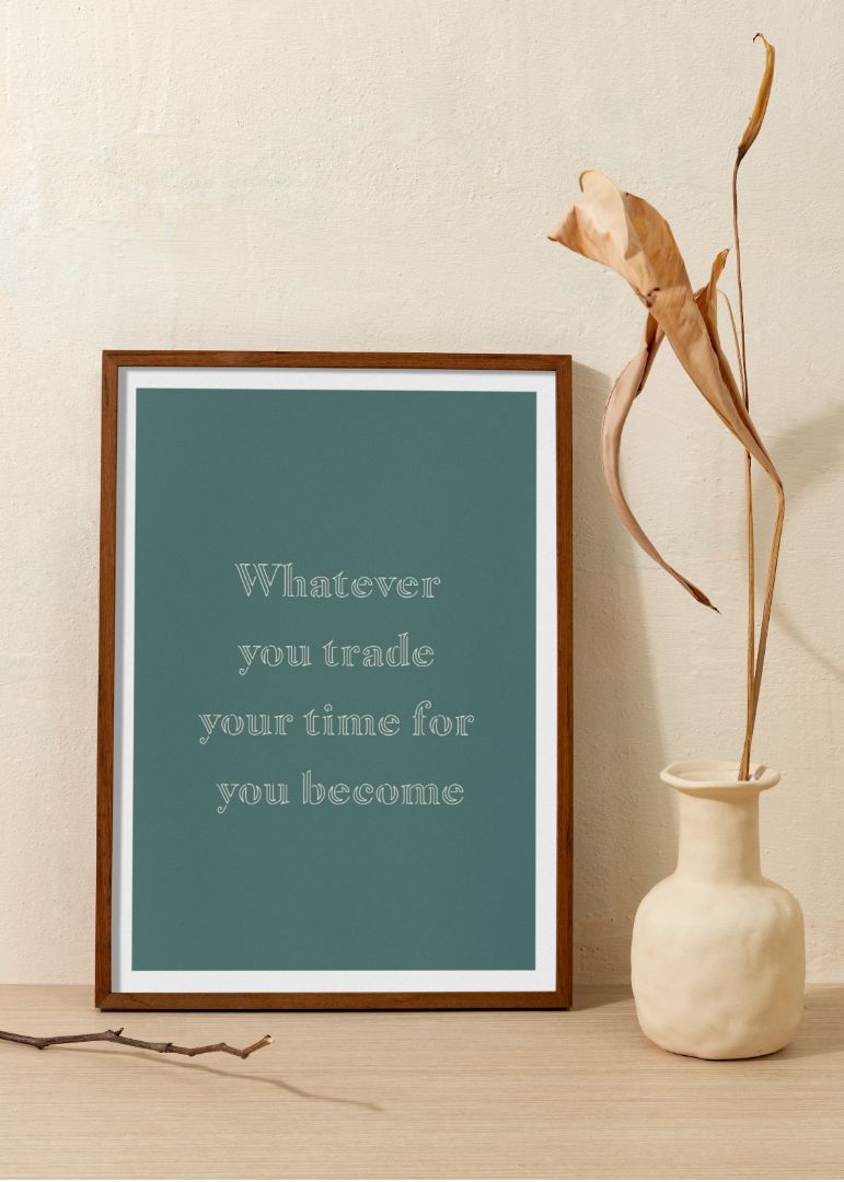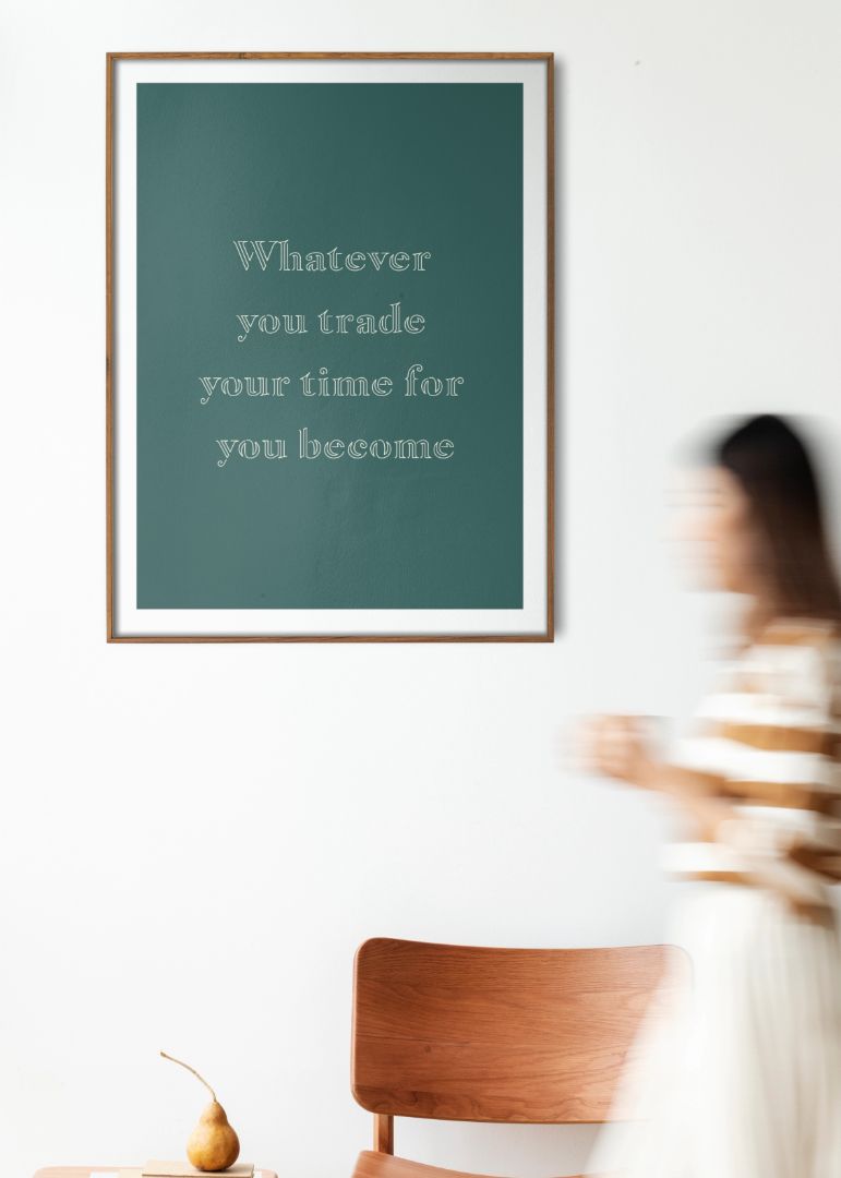 Hæng denne plakat op i din stue, kontor eller soveværelse, hvor du har brug for en daglig påmindelse om at værdsætte din tid og bruge den på det, der gør dig glad. Det er også en skøn gaveidé til veninden, der trænger til lidt ekstra motivation og sjov i sin hverdag.